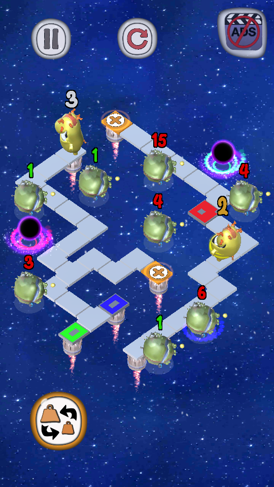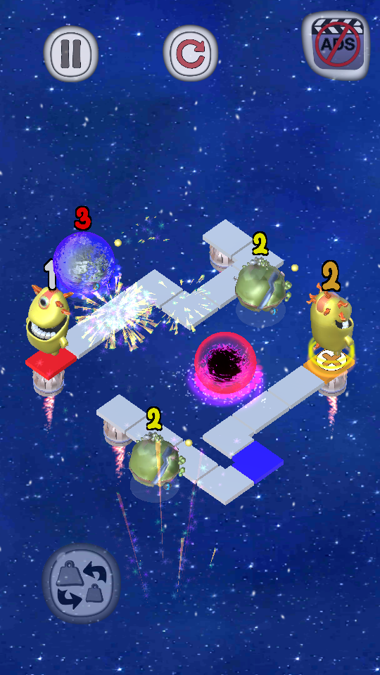 Help these 2 brothers to eat planets across the levels, avoiding any trap in the route.